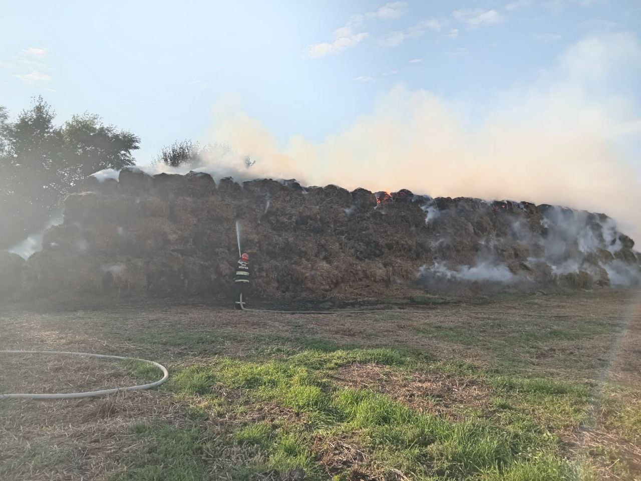 По информации спасателей, огнём уничтожено около 150 тонн соломы, свернутой в рулоны.