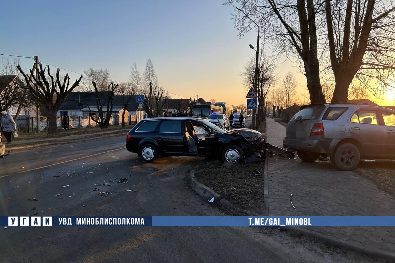 По информации ГАИ Минской области, около 07:30 41-летняя местная жительница, управляя автомобилем Audi A6, совершила наезд на Volkswagen, который остановился в полосе движения для выполнения левого поворота.