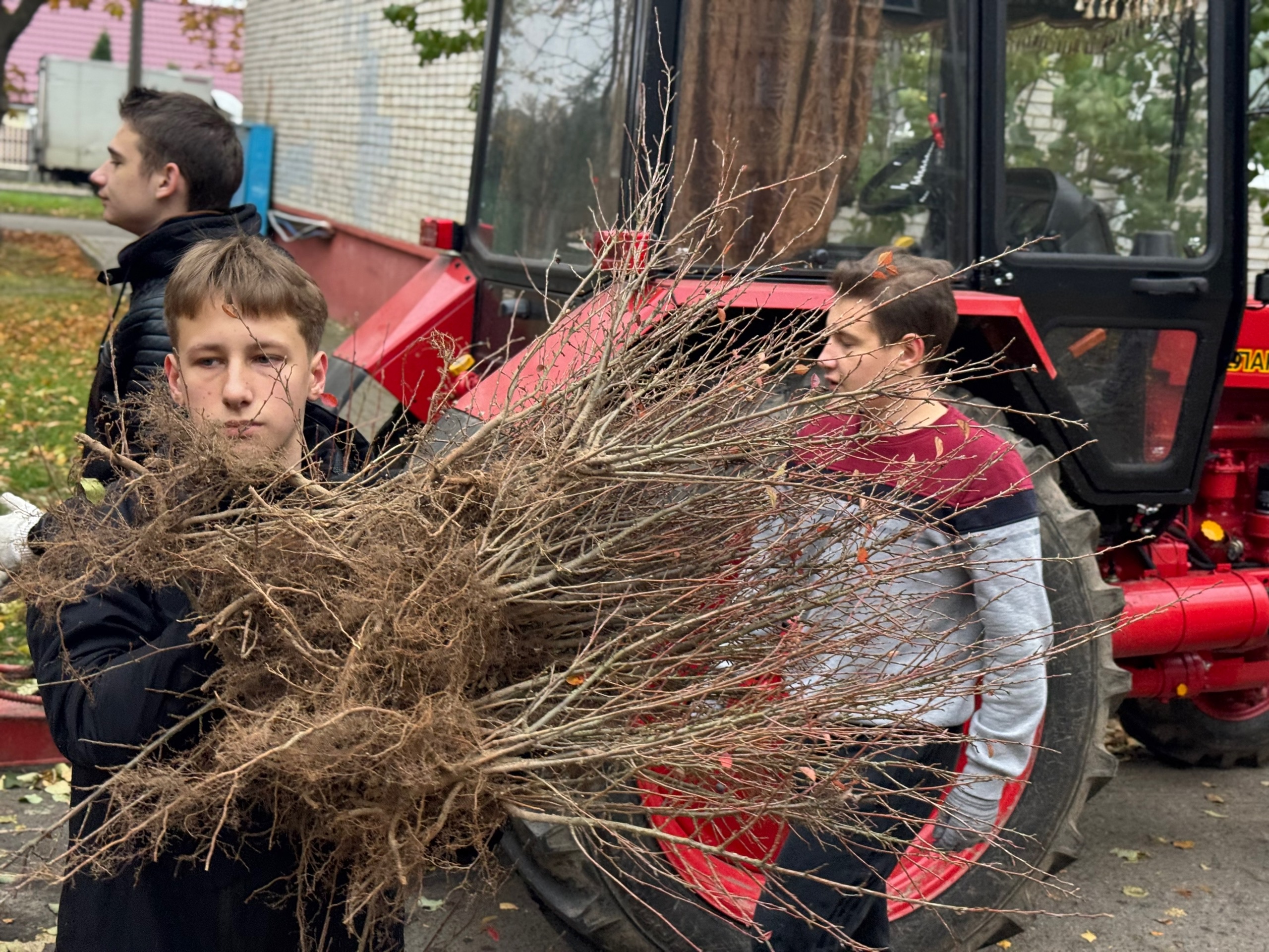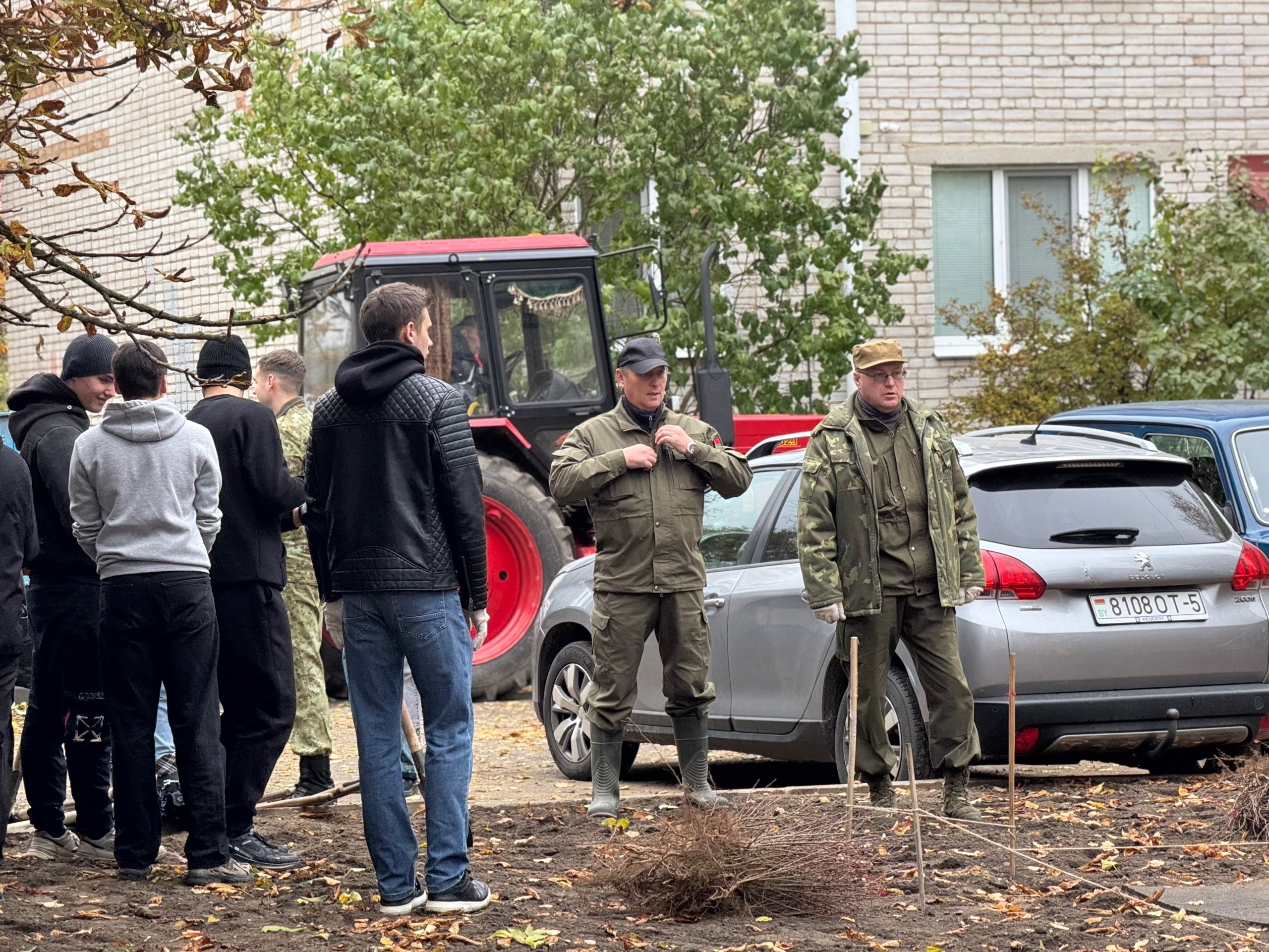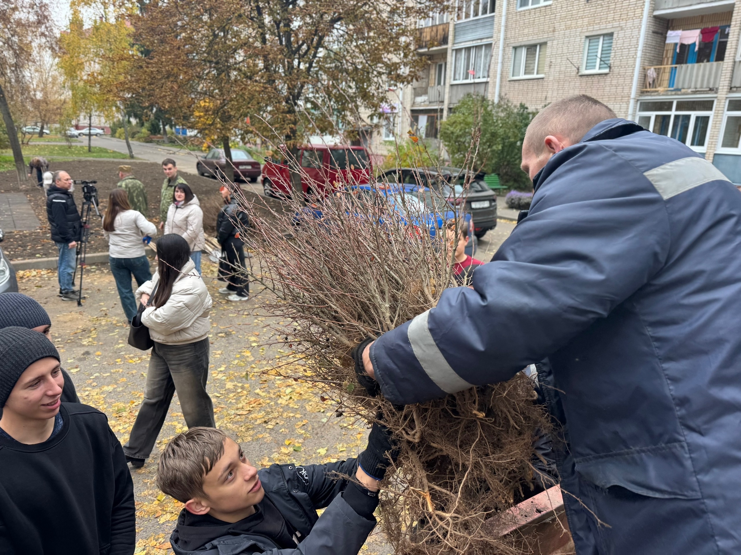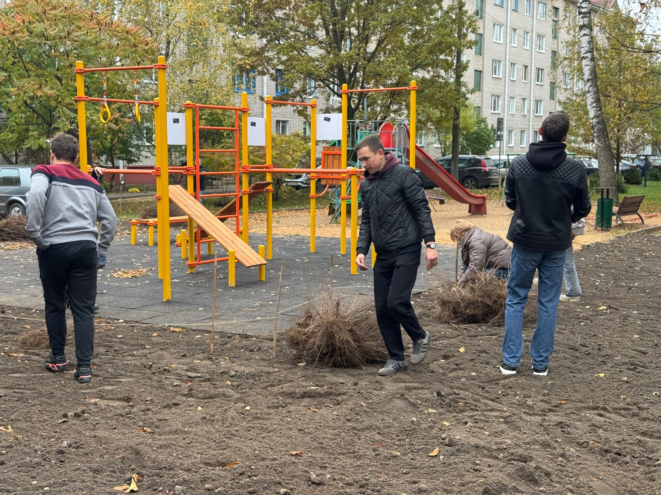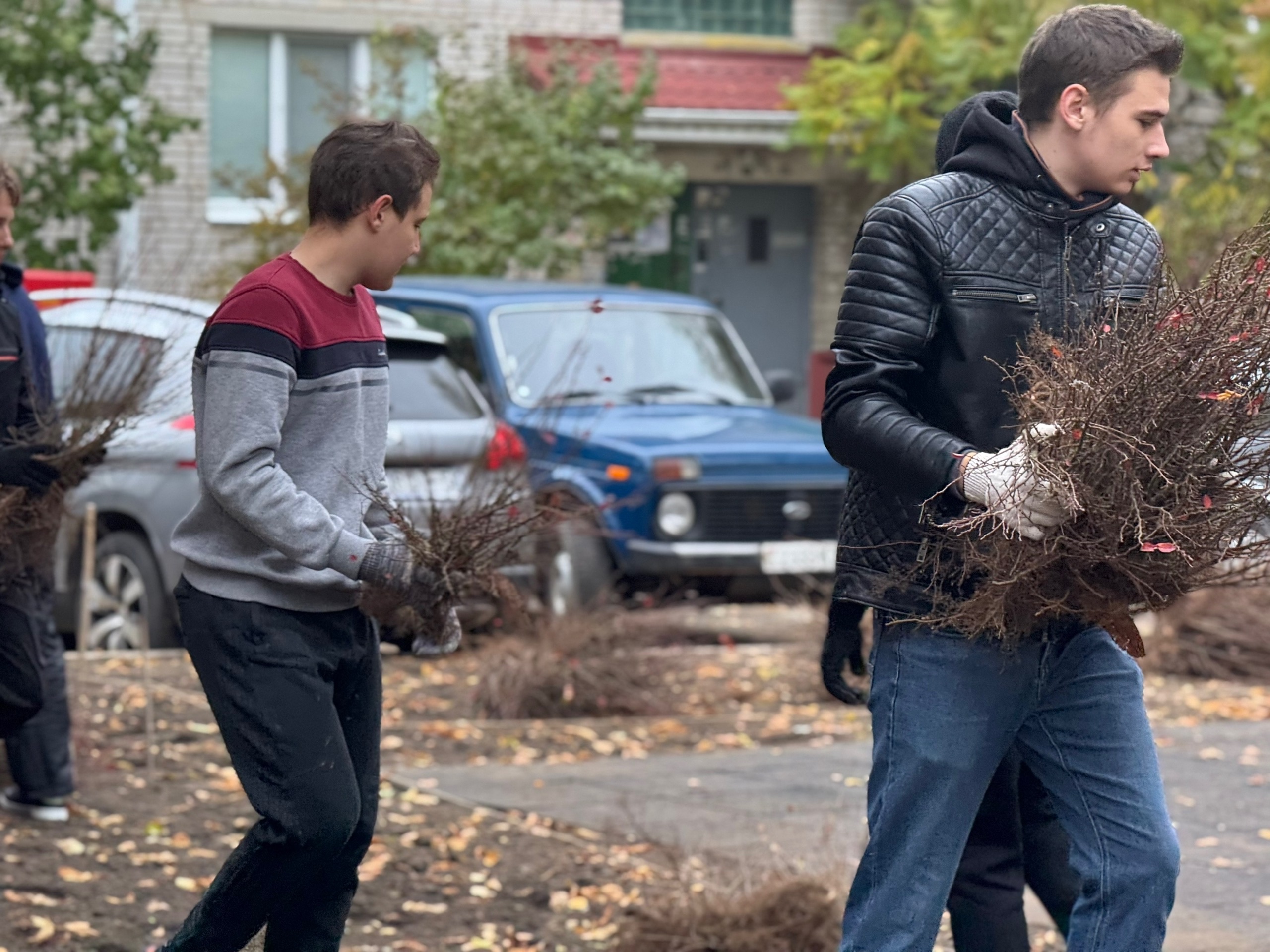 Молодежь высаживает растения на клумбах возле площадки по улице Жукова, 13, убирает листву и мусор на придомовой территории. Всего в акции задействовано около 20 человек.