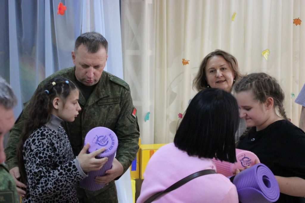 Военнослужащие транспортных войск совместно с участниками спортивного проекта Президентского спортивного клуба «Спорт для всех» приехали к детям с подарками. Ребятам передали спортивный инвентарь и сладости.