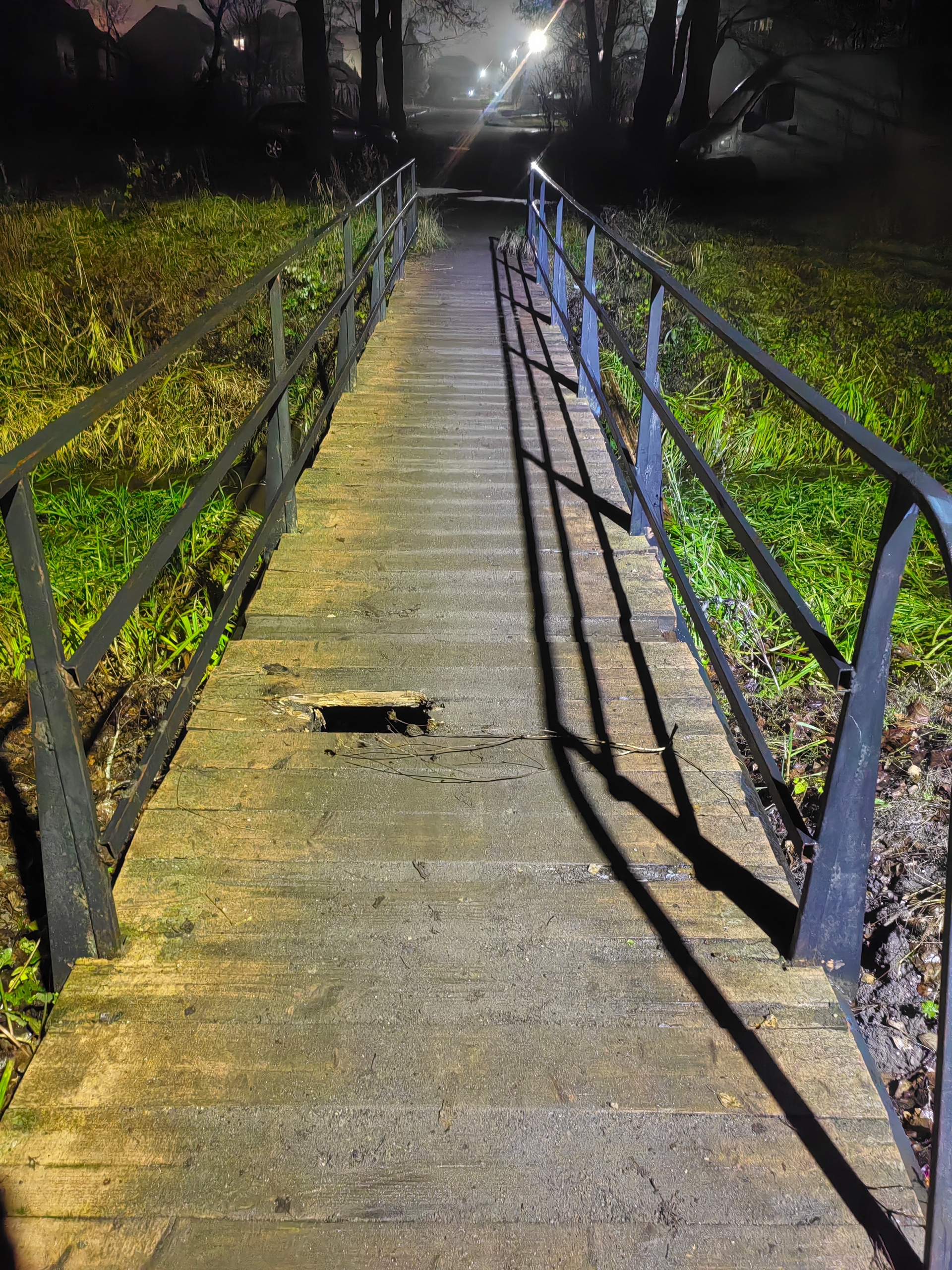 На присланном фото видно: одна из досок полностью проломилась, а настил местами «гуляет» под ногами.