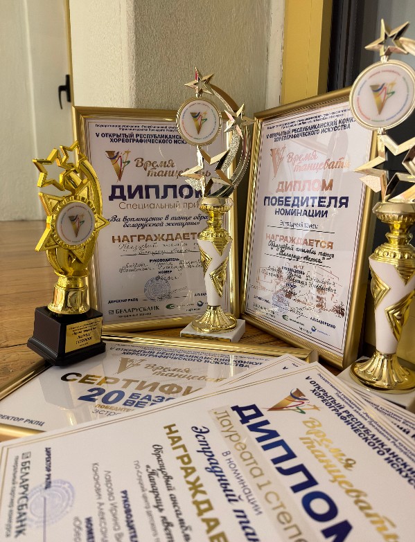 В число лучших попал номер «Оберег» — и именно он принес ансамблю сразу три награды в номинации «Эстрадный танец». Среди них — диплом лауреата I степени, победа в номинации с денежным сертификатом в размере 20 базовых величин, а также специальный приз за воплощение образа белорусской женщины.