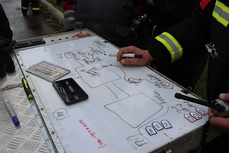 По тактическому замыслу, во время чрезвычайной ситуации в ходе технологического процесса произошло загорание горючих отложений на пятом этаже зерноочистительного отделения. Создалась угроза распространения пожара на вышерасположенный этаж, а также по галерее — в здание мельницы. В результате загорания были блокированы два человека, которые не могли самостоятельно передвигаться из-за полученных травм.