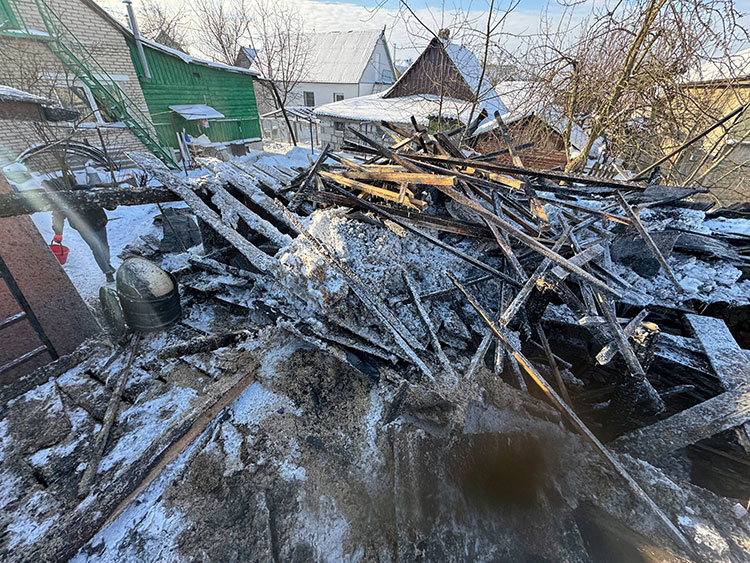 Следующий случай произошёл 25 января в 07:20. В Слуцке, на переулке Куприянцева, загорелась хозпостройка. Огнём уничтожена крыша, повреждены стены и имущество по всей площади. Предварительная причина — нарушение правил эксплуатации электросетей.