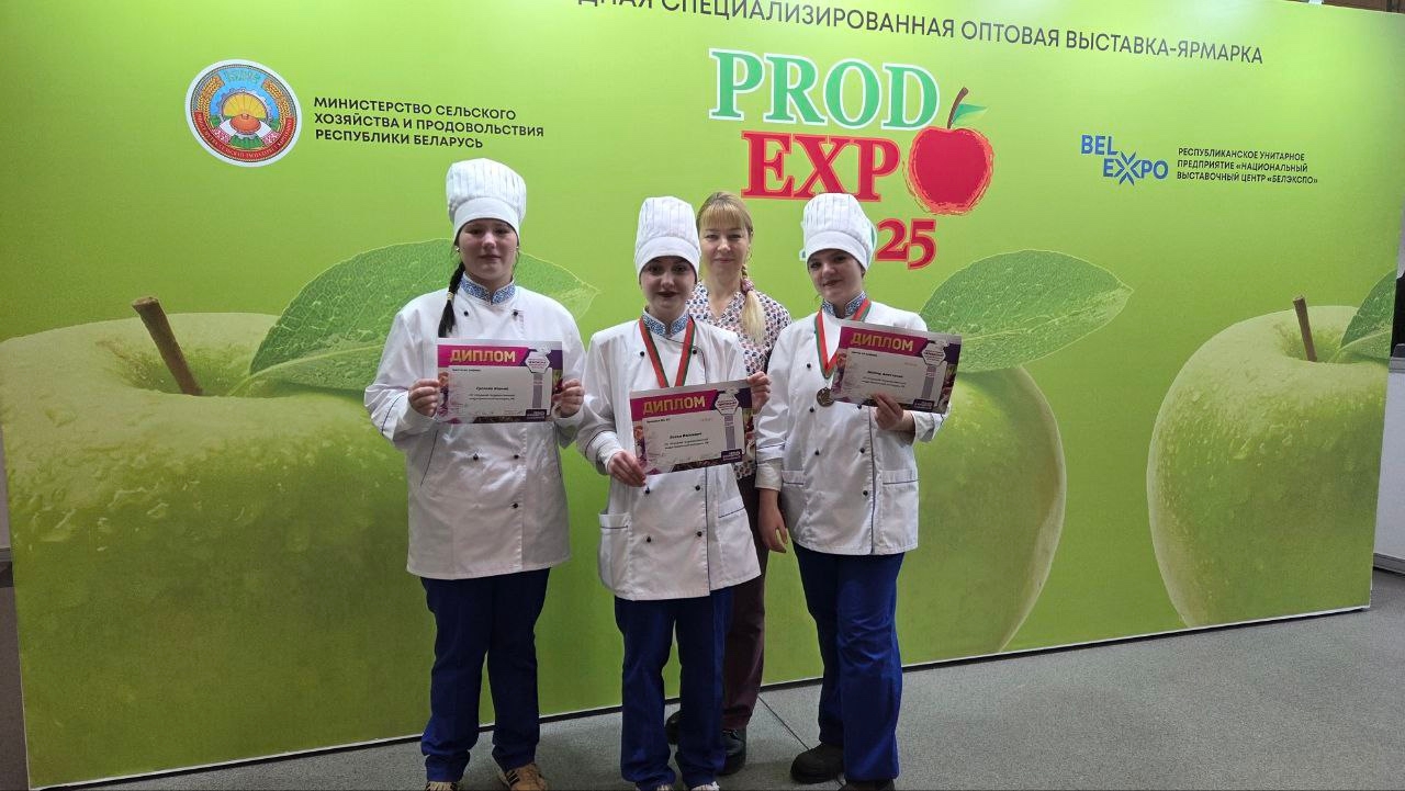 Три учащиеся Слуцкого государственного индустриального колледжа успешно выступили на международном чемпионате кондитерского искусства на PRODEXPO – 2025.