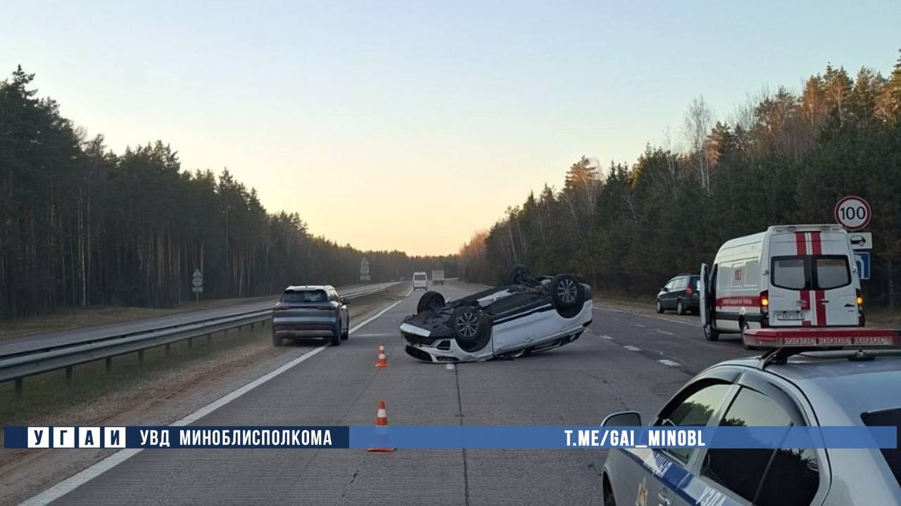 Вечером 2 апреля на трассе в сторону Слуцка произошла авария — водитель потерял управление, машина врезалась в ограждение и опрокинулась.