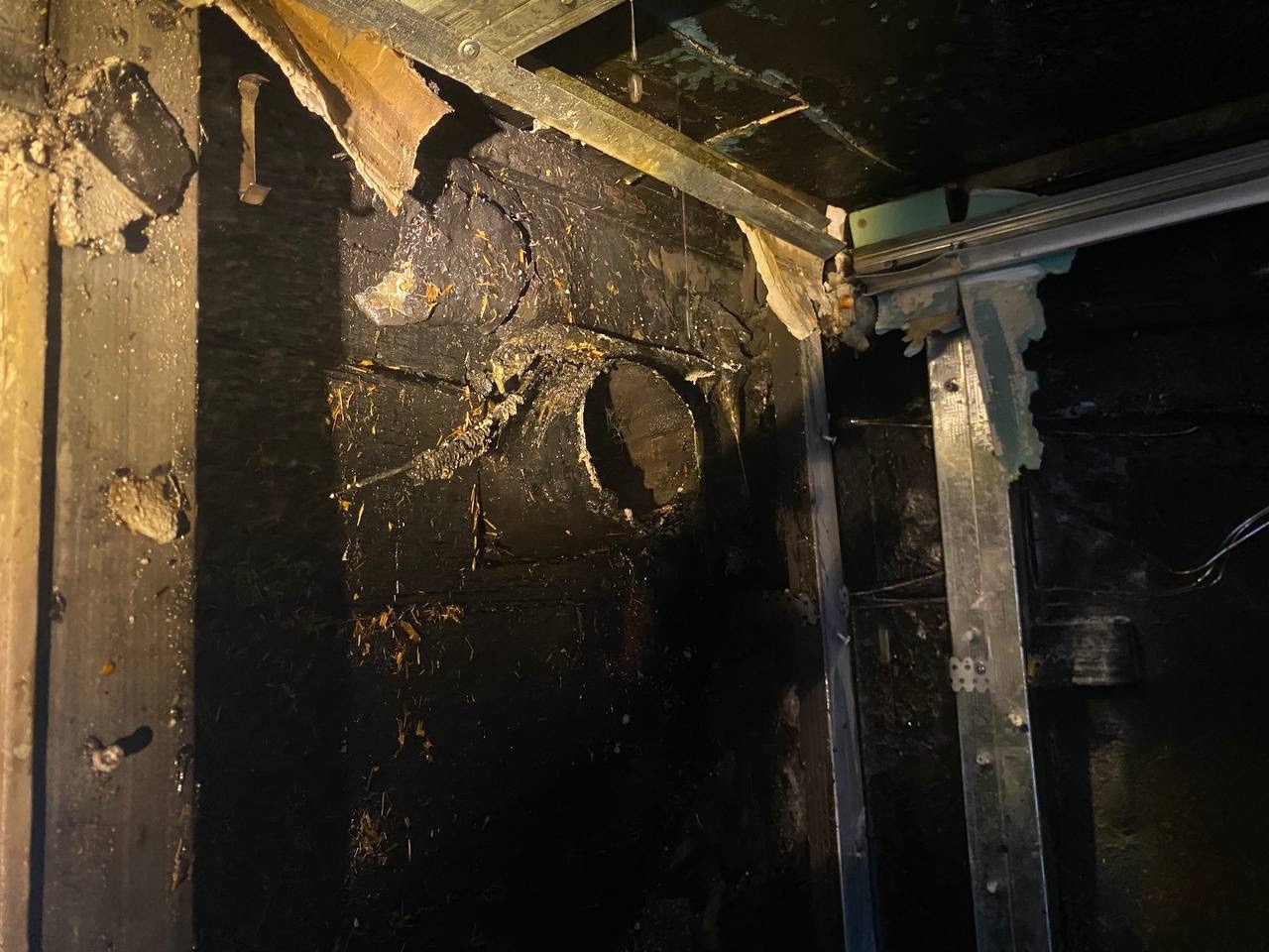 В результате происшествия огнём повреждены стена и перекрытие здания.
