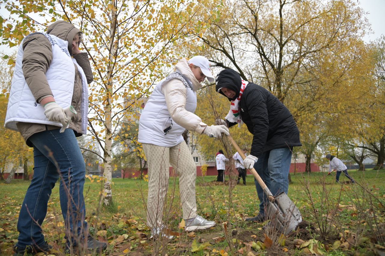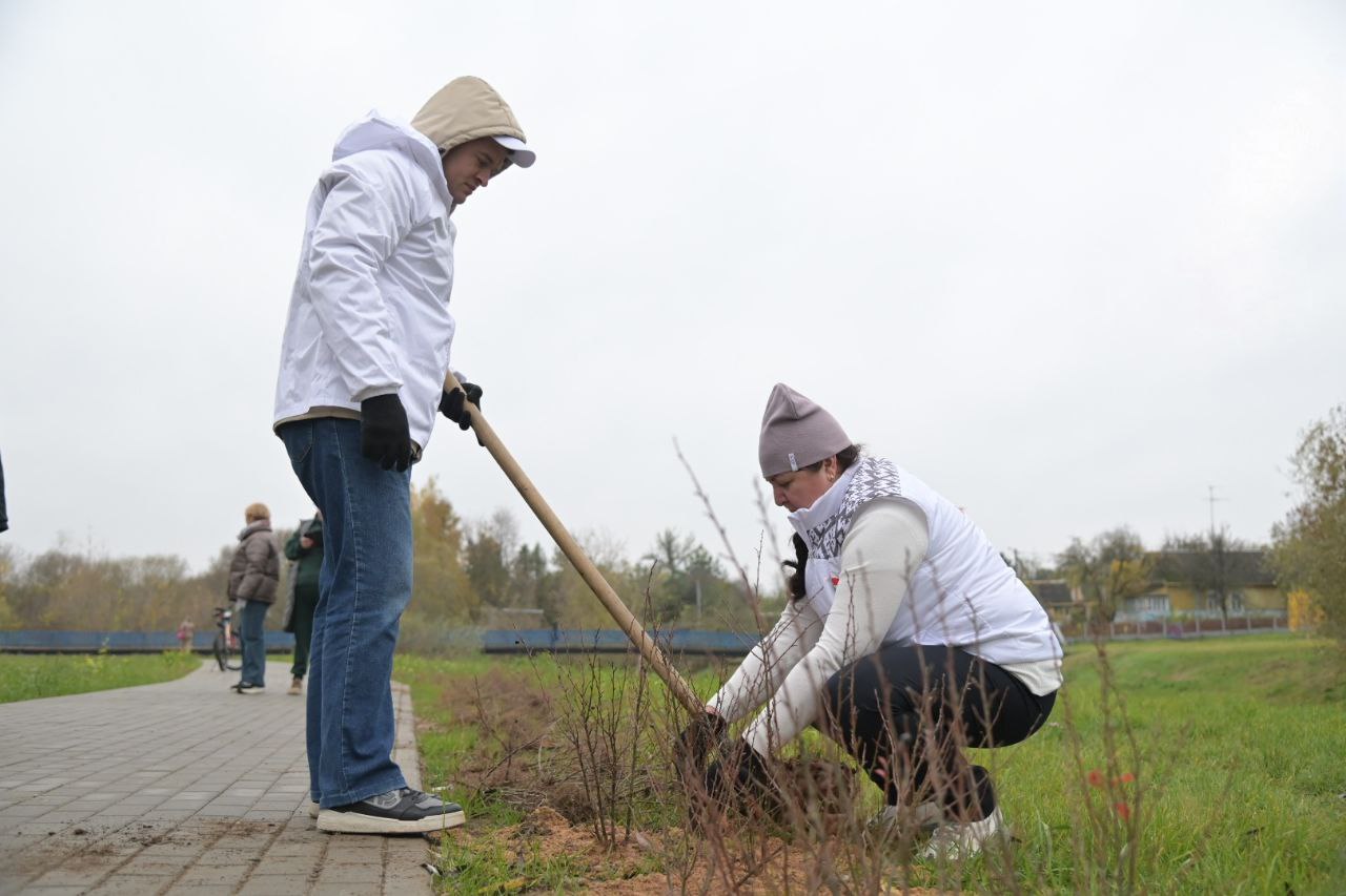 Участники навели порядок на территории: убрали опавшую листву и высадили около 600 кустарников. Особое внимание уделили зоне возле новой детской площадки.