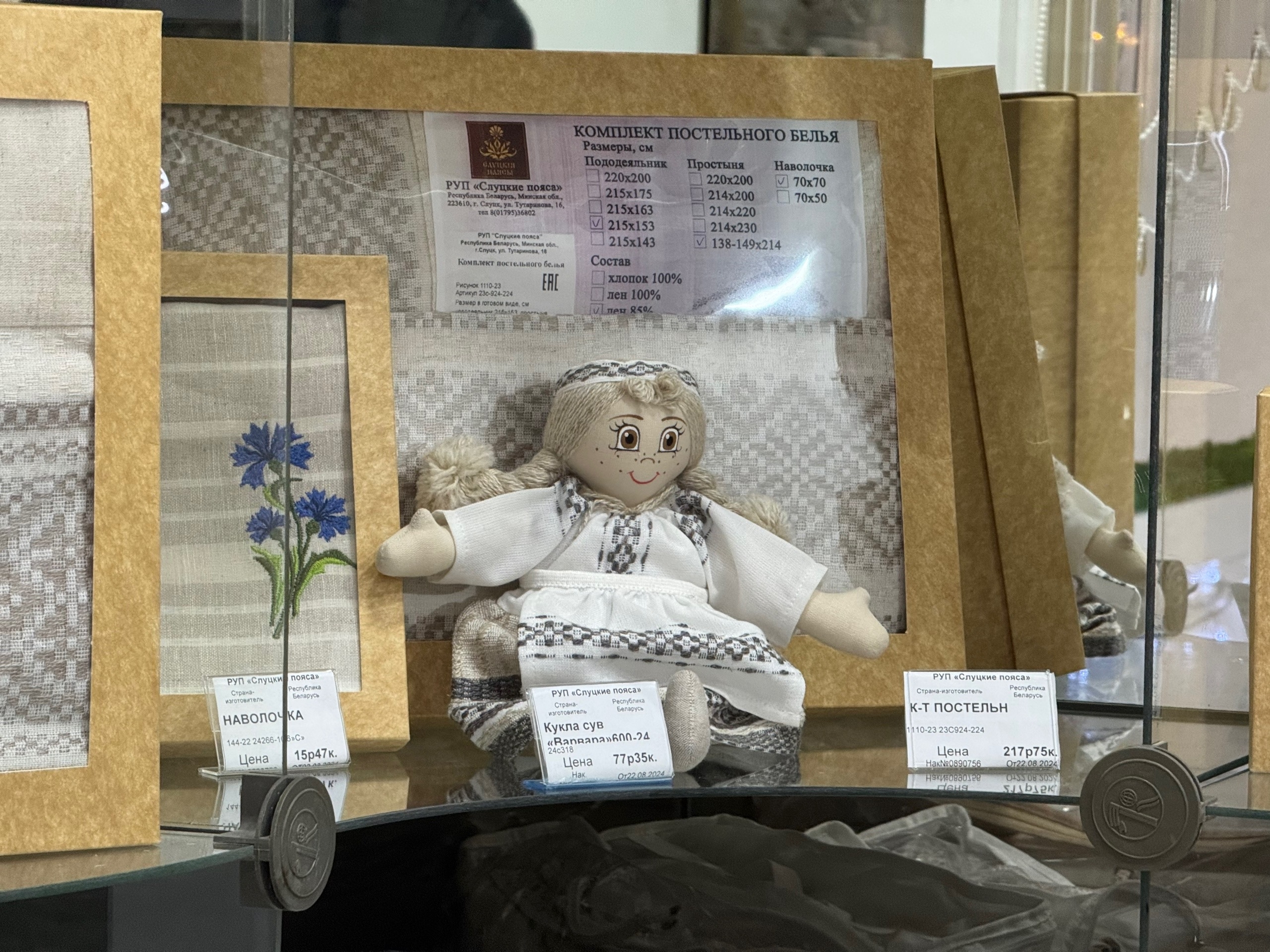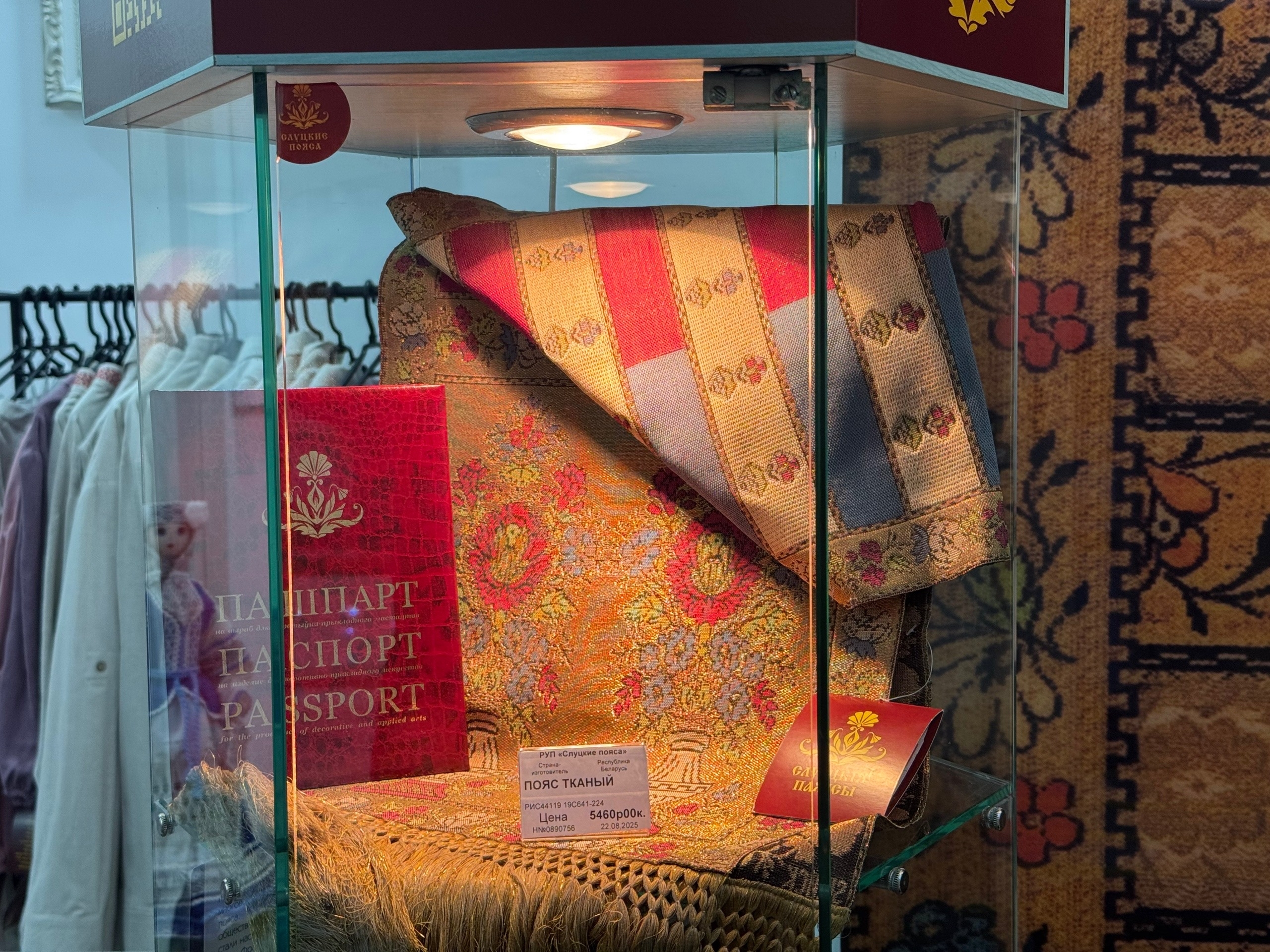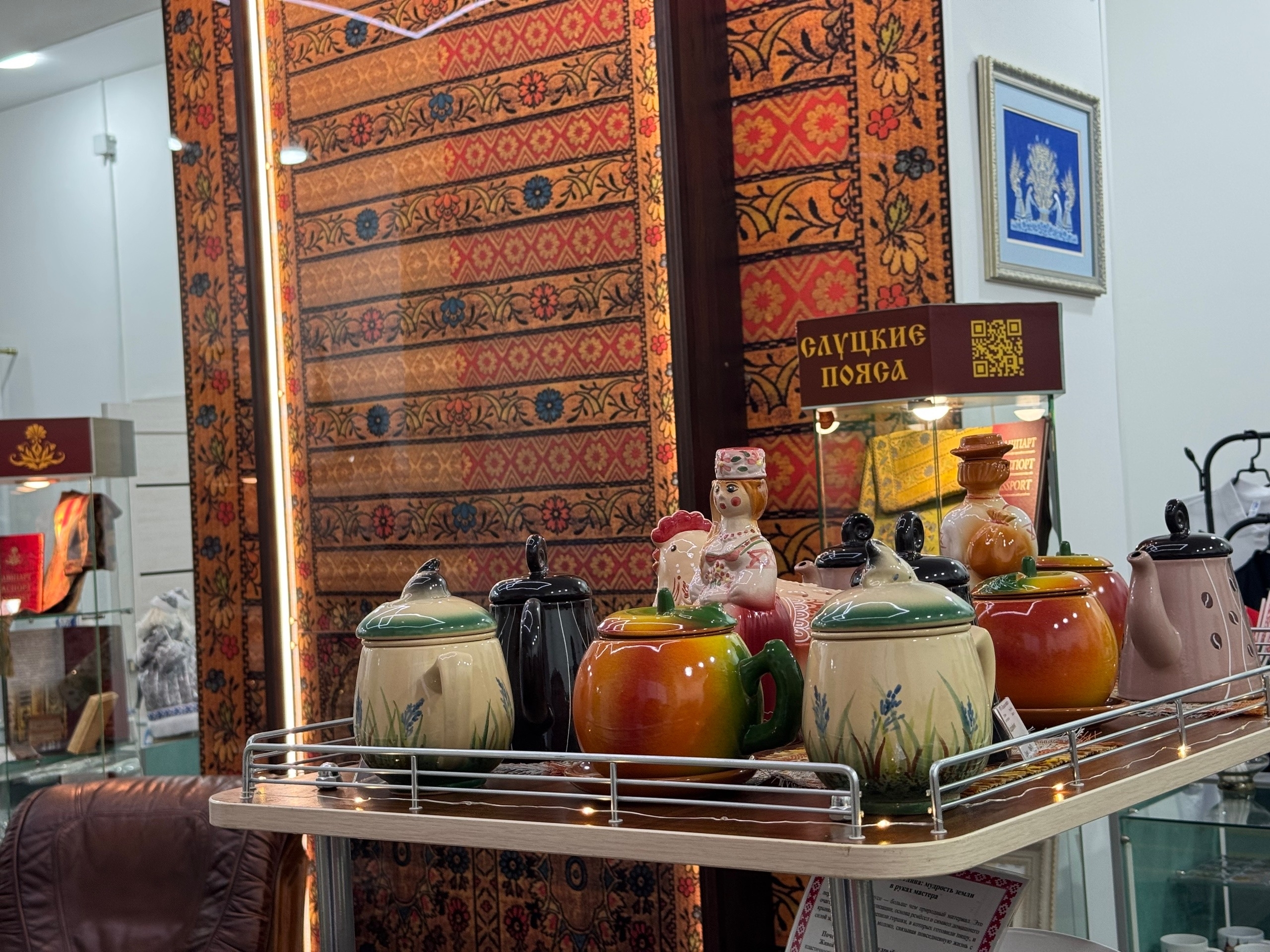 Справка: РУП «Слуцкие пояса» — предприятие, специализирующееся на производстве художественно-декоративных тканей, поясов и сувенирной продукции с национальными мотивами.
