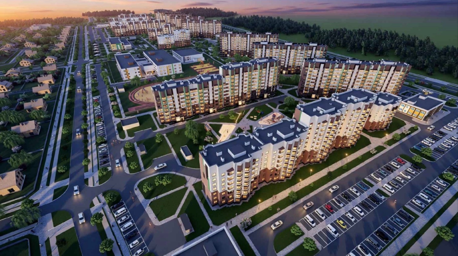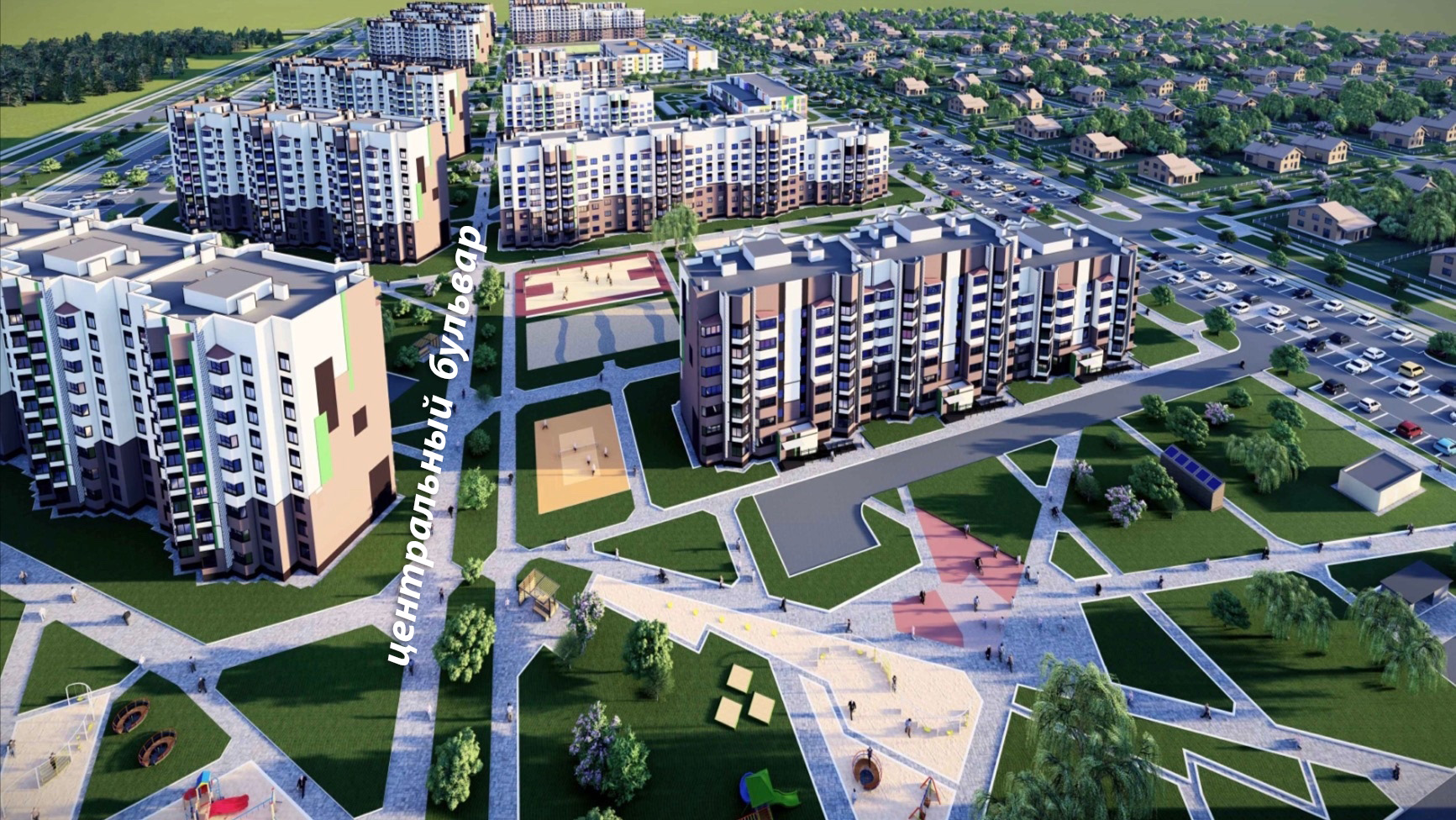 Индивидуальная застройка, а также благоустройство и озеленение микрорайона, будут отнесены уже к следующим: 3, 4, 5 и 6-й очередям строительства.