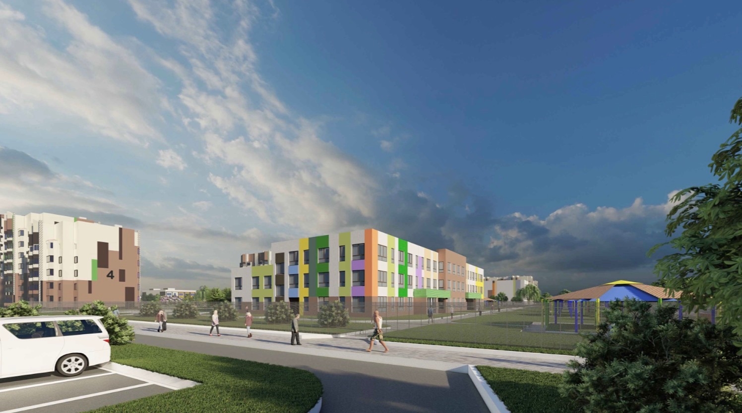 Также планируется строительство школы на 600 мест с отдельной стоящим зданием с полноразмерным бассейном, детский сад на 260 мест с бассейном, здание амбулатории, учреждения социально-бытового обслуживания, которые могут стать торговыми центрами, и объектами по оказанию услуг и общепита, гостиницей.