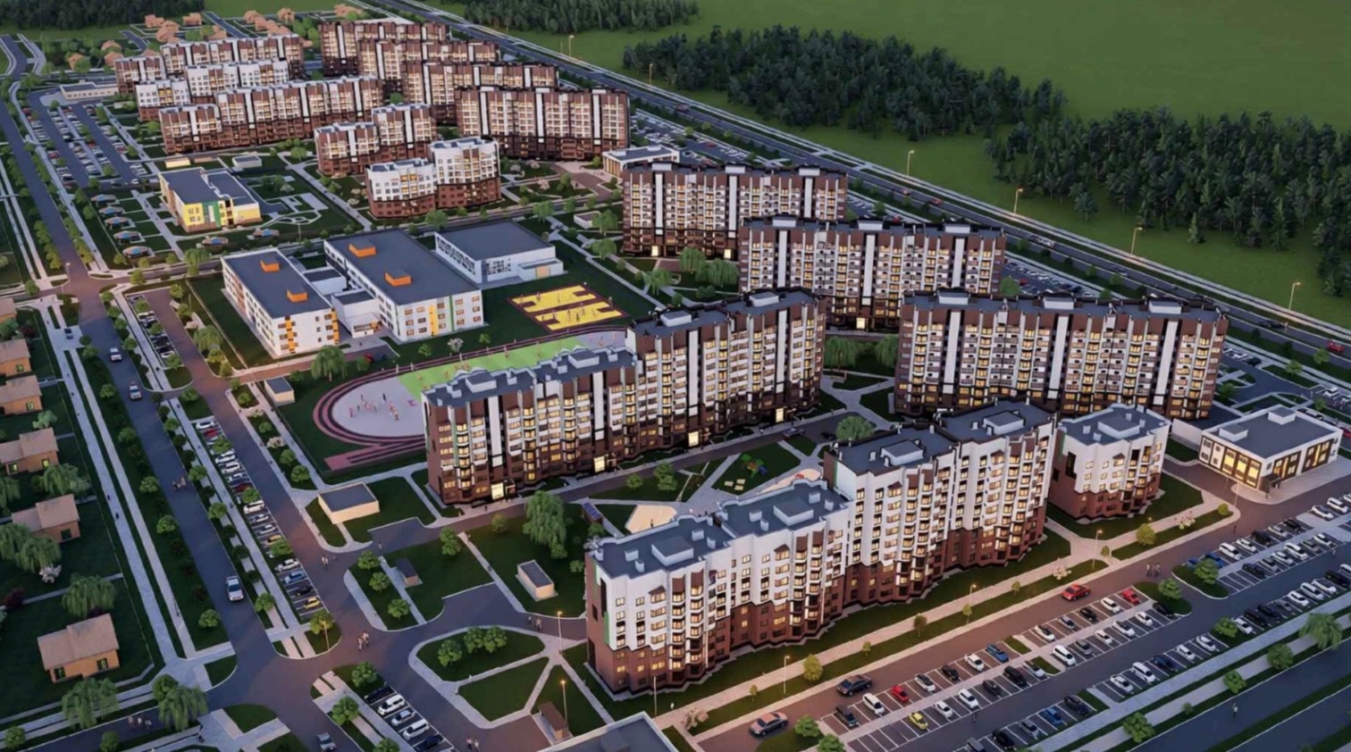 В долгосрочной перспективе здесь планируется возвести 14 панельных многоквартирных жилых домов из конструкций ОАО «Солигорский домостроительный комбинат»: от 9-этажных ближе к улице Ленина, а также 5-и и 4-этажные вглубь микрорайона. Дома будут типовыми, девятиэтажки на 141-145 квартир, но в качестве отделки фасада на всех зданиях применят декоративную окраску, облицовку декоративной плиткой типа «клинкер» и декоративными ламелями из металла с цветным полимерным покрытием.