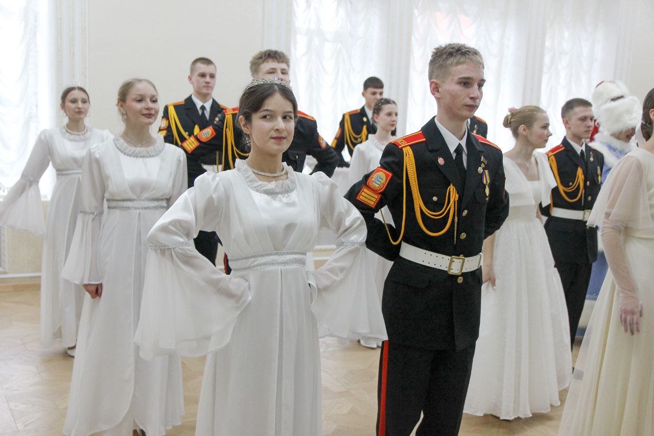 В зале старинной гимназии звучала классическая музыка, кадеты танцевали полонез, вальс, польку. Танцевальную программу дополнили элементы интерактива: участники играли в «сюрприз для кавалера», а завершением вечера стал общий хоровод и «новогодний ручеек» с участием Деда Мороза и Снегурочки.