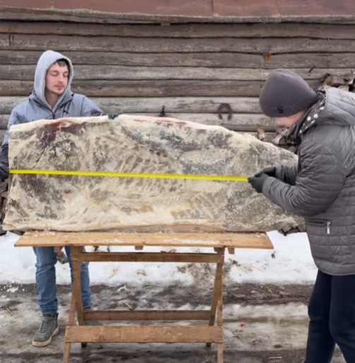 Во время съемки девушка с улыбкой замечает: потом, мол, будут спрашивать, где «водятся такие мамонты». Публикация вызвала активную реакцию — в комментариях шутили о масштабах «кабанчика», предлагали использовать заготовку как столешницу или сравнивали её с ковром.