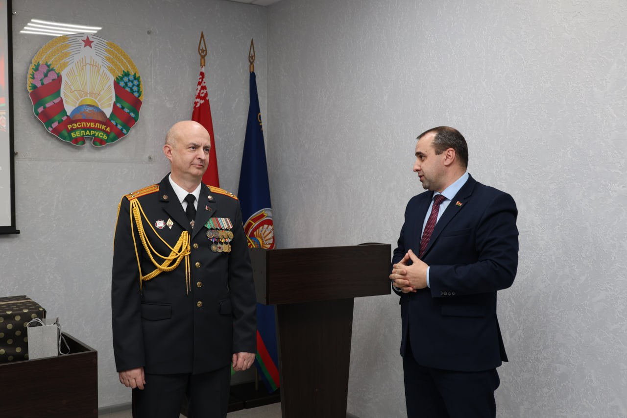 Заместители и сотрудники Слуцкого РОВД выразили уважение и благодарность уходящему начальнику за годы совместной службы.