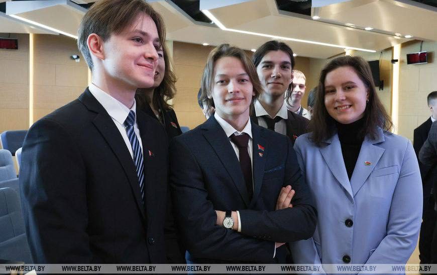 На встрече присутствовали как школьники, так и студенты‑первокурсники учреждений высшего образования. Также были приглашены 17 педагогических работников, которые готовят белорусские команды к международным олимпиадам, и руководители тех школ, чьи учащиеся завоевали золотые медали в 2025 году.